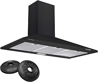 CIARRA CBCB9201 Hotte Aspirante 90cm Noir - 370 m³/h - Filtre à Charbon Inclus - Evacuation ou Recyclage - LED Eclairage - 3 Filtres à graisse Alu Lavable - Hotte de Cuisine Silencieuse