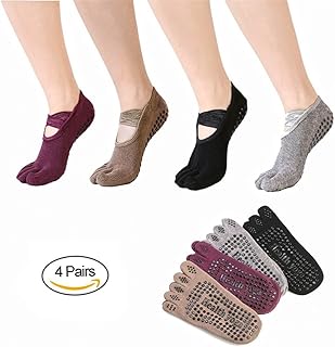 SANIQUEEN.G 4 Paires Chaussettes Antidérapantes, Chaussettes Yoga en Coton Antidérapant Chaussettes Orteil Complet-Doigts de Pied Séparés Antidérapantes Grip Socks en Coton pour Femme
