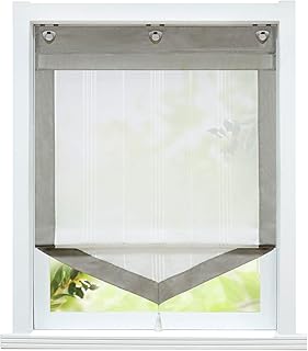 Eslir Store bateau sans perçage Rideau de cuisine Maison de campagne Rideau à œillets transparent Rideau à œillets lin marron L x H 80 x 140 cm 1 pièce