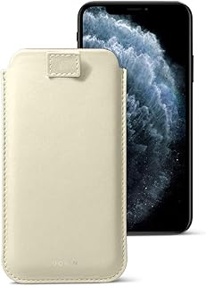 Lucrin - Étui Tirette Compatible avec iPhone 11 Pro/ iPhone XS/ iPhone X et Supporte le Rechargement Sans Fil - Blanc Cassé - Cuir Véritable