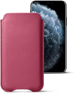 Lucrin - Housse Protection Compatible pour iPhone 11 Pro Max/iPhone XS Max/iPhone 8 Plus et Supporte Le Rechargement sans Fil - Fuchsia - Cuir Véritable