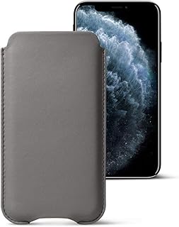 Lucrin - Housse Protection Compatible pour iPhone 11 Pro Max/iPhone XS Max/iPhone 8 Plus et Supporte Le Rechargement sans Fil - Gris Souris - Cuir Véritable