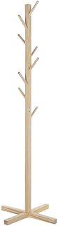 Porte-manteaux sur pied en bois de pin laqué avec 8 crochets pour manteaux, chapeaux, écharpes, vêtements et sacs à main (couleur bois, 50 x 50 x 165 cm)