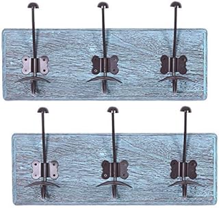 Porte-manteau rustique mural avec 3 crochets robustes - Ensemble de 2 - Porte-manteaux en bois vintage - Porte-manteau rustique pour manteaux, sacs, serviettes et plus - 88.9 x 15.59cm- Bleu rustique