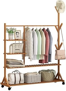 FEIFEI Porte manteau Porte-manteaux multifonctions avec rangements Porte-manteaux en bois à 4 niveaux, se tenant librement sur des pattes avec 6 crochets - 100 × 38 × 176 cm / 39,37 × 14,96 × 69,29 ''