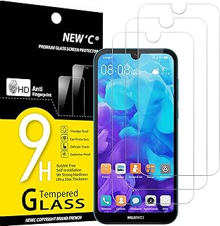 NEW'C Lot de 3, Verre Trempé Compatible avec Huawei Y5 (2019), Film Protection écran sans Bulles d'air Ultra Résistant (0,33mm HD Ultra Transparent) Dureté 9H Glass