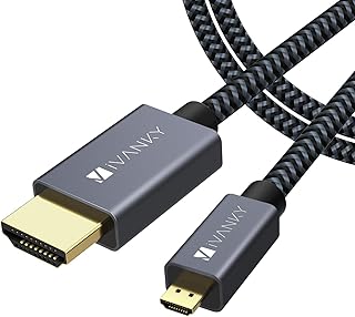 iVANKY Câble Micro HDMI vers HDMI 4K@60Hz, Micro HDMI vers HDMI mâle mâle, Nylon Tressé& Plug-Play, Compatible avec Raspberry Pi 4/Huawei MediaPad/ASUS Zenbook/Caméra Sony, etc - 1m