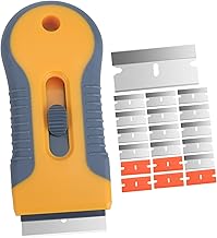Ehdis Mini Grattoir, Verre Grattoir Vitrocéramique Plaque Grattoir avec 10 pièce Lames Métallique, pour enlever Les étiquettes, a Colle, décalcomanies Autocollants et Plus