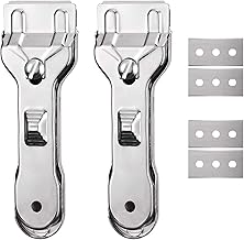 2pcs Grattoir Plaque Vitrocéramique, Grattoirs en acier inoxydable avec poignée, Grattoir haute qualité avec 4 lames de rechange, Grattoir pour Vitres, Vignettes et Plaques de Cuisson