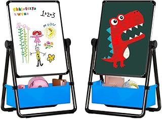 Arkmiido Chevalet d'art pour Enfant Chevalet Double-Face pour Enfants sur Pied Tableau Blanc et Noir avec Support et Réglable 360 Degrés Lettres et Nombres Magnétiques avec Accessoires (Noir)