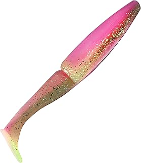 SAWAMURA Leurres Souples Shad avec Queue Articulee One Up Shad 5In - 10,6Cm - 13G - 073 Pink Chartreuse - Vendu A L Unite