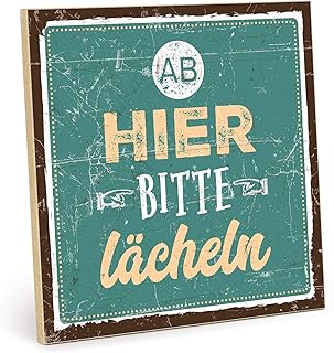 Type Plaque en Bois avec Inscription en Allemand AB Hier Bitte Lächeln – au Look Vintage avec Citation en Cadeau et décoration (Dimensions : 19,5 x 19,5 cm), 19,5 x 19,5 cm