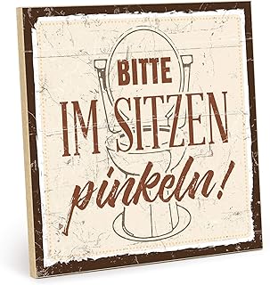 Type de Plaque en Bois avec Inscription en Allemand Bitte IM SITZEN PINKELN – Look Vintage avec Citation en Cadeau et décoration (Dimensions : 19,5 x 19,5 cm), 19,5 x 19,5 cm
