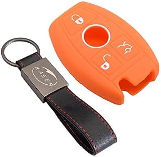 Housse étui en Silicone pour Clé Mercedes – Coque Cover Porte-Clés 3 Boutons pour Classe-E S A CLA GLA GLE GLC GLK AMG Protection Télécommande Voiture (Orange/Solo Keyless GO)