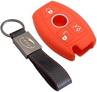 Housse étui en Silicone pour Clé Mercedes – Coque Cover Porte-Clés 3 Boutons pour Classe-E S A CLA GLA GLE GLC GLK AMG Protection Télécommande Voiture (Rouge/Solo Keyless GO)