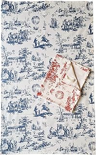 Lot de 2 torchons en coton toile de Jouy - Bleu et rouge - Grand design français - Torchons de cuisine 75 x 47 cm avec crochet - Lavable en machine - 100 % coton