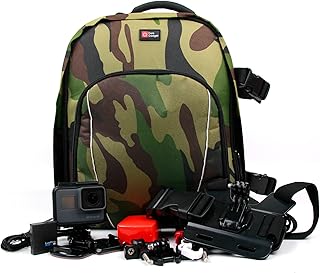 Sac à dos de transport 'camouflage' DURAGADGET pour GoPro Hero 7 (2018) / Hero 6, Hero 5 / 5 Session, Hero 4, HERO+ LCD, Hero4 Session, GoPro 1, 2, 3, 3+ HD caméras de sport et ses accessoires - avec compartiments de rangement