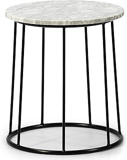 VS Venta-stock Table auxiliaire Table Basse Ronde Colombo avec Plateau en marbre Blanc Massif et Pieds métalliques en Couleur Noir Mat. /DIAMÈTRE: 35 cm