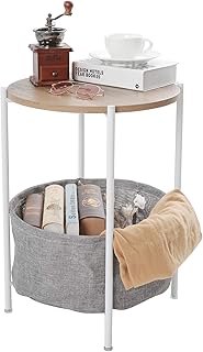 COSWE Plateau en métal - Table d'appoint Ronde - Plateau Amovible pour l'extérieur et l'intérieur - Table Basse - Table de téléphone (Bois Blanc)
