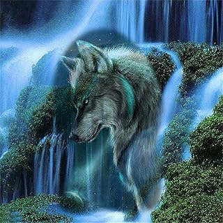 Peinture en Diamant 5D DIY, Adulte Broderie de diamants Point de Croix en Résine Décoration de Maison Salon Diamond Painting Kits Complets, Loup et cascade 40X40cm