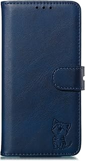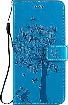 Fatcatparadise Coque Compatible Huawei Honor Play 3 [avec Verre Trempé], Bookstyle Motif de gaufrage Housse Imprimé en PU Cuir Case à Rabat Coque de Protection Portefeuille Cover (Bleu)