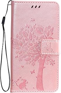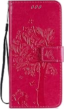 Fatcatparadise Coque Compatible LG K20 2019 [avec Verre Trempé], Bookstyle Motif de gaufrage Housse Imprimé en PU Cuir Case à Rabat Coque de Protection Portefeuille Cover (Rosé)