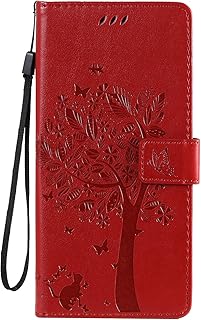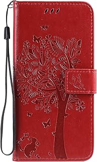 Fatcatparadise Coque Compatible LG K40S [avec Verre Trempé], Bookstyle Motif de gaufrage Housse Imprimé en PU Cuir Case à Rabat Coque de Protection Portefeuille Cover (Rouge)