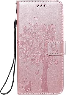 Fatcatparadise Coque Compatible LG K20 2019 [avec Verre Trempé], Bookstyle Motif de gaufrage Housse Imprimé en PU Cuir Case à Rabat Coque de Protection Portefeuille Cover (Or Rosé)