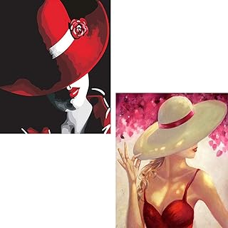 Bimkole 2 Pack 5D Diamond Painting DIY Kits Chapeau De Beauté, Peinture D'art Femme Broderie Diamant Kits De Broderie Au Point De Croix Strass Rond Résine Peinture Décor à La Maison, (30x40 cm)