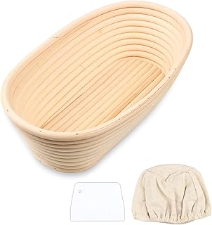 Panier banneton pain,banneton à pain Ovale de 8 pouces Banneton Panier avec doublure en tissu et grattoir à pâte Corbeille à pain Ovale Banneton Pain Corbeille à Pain en Osier parfaits pour levain