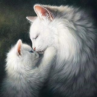 Kit de peinture diamant 5D à faire soi-même, peinture par numéro, pour adultes chats blancs fournitures travaux manuels point de croix décoration maison salon chambre coucher art strass 5D 30x30cm