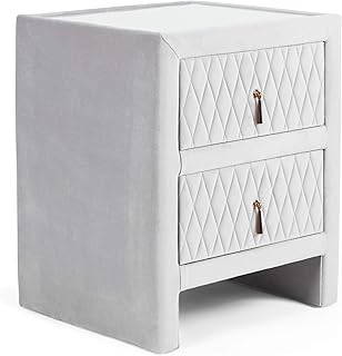 Beautify Table de Chevet matelassée avec tiroirs - Table de Chevet Grise - Armoire de Chevet en Velours - Meubles de Chambre à Coucher