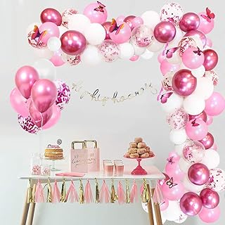 APERIL Arche Ballon Guirlande Kit 117pcs Ballons Rose Blanc Métallisé Confettis en Latex Ballons de Fête et 3D Papillons Deco pour Anniversaire, Mariage, Baptême, Baby Shower Filles