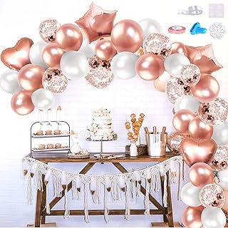 HALOVIE Arche Ballon Or Rose, 104pcs Kit Arche Ballon Anniversaire Rose Gold Fille Mariage Saint Valentin Guirlande Ballon Décoration, Ballons Confettis avec Bande et Ruban