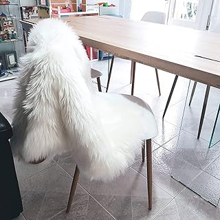 HETOOSHI Peau de Mouton synthétique,Tapis Imitation Laine de Mouton Imitation Toison Moquette Peau d'agneau Tapis Fluffy Soft Longhair Décoratif Coussin de Chaise Canapé Natte (Blancs, 70 x 90 cm)