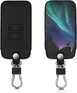 kwmobile Accessoire Clé de Voiture Compatible avec Renault Smart Key 4-Bouton (Keyless Go Uniquement) - Coque de Protection en Simili Cuir - Aurore boréale Turquoise-Bleu-Noir