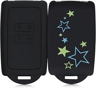 kwmobile Accessoire clé de Voiture Compatible avec Renault Smart Key 4-Bouton (Keyless Go Uniquement) - Coque en Silicone Souple avec Embout Porte-Clé - étoile Vert Clair-Bleu-Noir