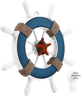 Yardwe Gouvernail de Mur en Bois Style Méditerranéen Tenture Murale Étoile de Mer Bateau Roue Nautique Plage en Bois Art Sculpture Pendentif pour La Maison Magasin Magasin Décoration de
