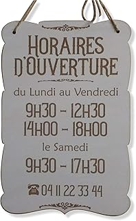 Craf'u HORAIRES D'OUVERTURE Plaque en Bois Personnalisée Panneau de Porte Magasin Ouvert FERMÉ Cœur 19.5 x 29 cm