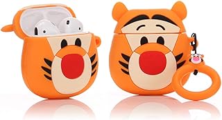 YIGEYI Airpods Étui en Silicone Compatible avec Les Airpods 1 et 2 Case Couverture de Dessin Animé 3D Mignon Drôle [Série d'animaux de Compagnie] (Tigre Mignon)