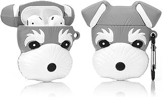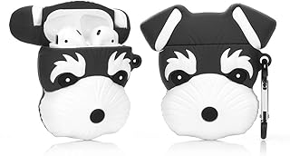 YIGEYI Airpods Étui en Silicone Compatible avec Les Airpods 1 et 2 Case Couverture de Dessin Animé 3D Mignon Drôle [Série d'animaux de Compagnie] (Chien Schnauzer)