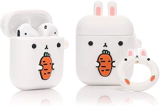 YIGEYI Airpods Étui en Silicone Compatible avec Les Airpods 1 et 2 Case Couverture de Dessin Animé 3D Mignon Drôle [Série d'animaux de Compagnie] (Lapin Blanc)
