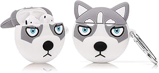 YIGEYI Airpods Étui en Silicone Compatible avec Les Airpods 1 et 2 Case Couverture de Dessin Animé 3D Mignon Drôle [Série d'animaux de Compagnie] (Chien Husky)