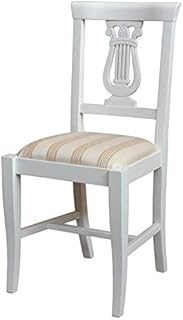 Chaise lyre, chaise avec dossier lyre, chaise bois massif, chaise blanche, chaise de repas, chaise de cuisine, chaise classique pour cuisine, chaise en bois, chaise rembourrée, chaise shabby chic