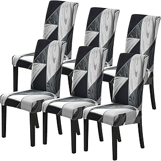 SearchI Housse de Chaise Salle à Manger,6 PCS Couverture de Chaise Extensible,Housse de Chaise Ajustement Universel Lavable, Moderne Couvre pour l'hôtel Hôtel Banquet Cuisine(Blanc&Noir,6 Pieces)