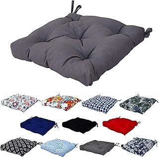 Coussin de chaise | Coussin de chaise avec liens | Luxueux pour chaise de jardin, salle à manger | 41 x 41 cm | Tufté, hypoallergénique, durable et lavable (gris)